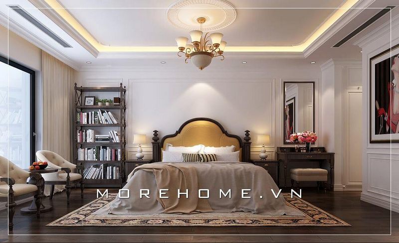 Mẫu giường ngủ phòng Master tại chung cư cao cấp mang lại phong cách tân cổ điển sang trọng.